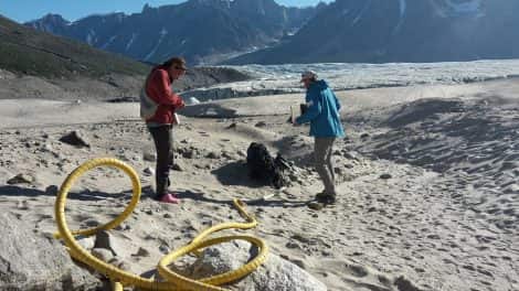 – Comprendre l’« anomalie » d’écoulement du gigantesque glacier Edward Bailey, qui draine la majeure partie de la calotte de glace du Renland. En effet, un de ses bras, le Catalinadal, « remonte » la pente de la vallée vers un lac situé entre deux glaciers. L’installation d’un réseau de capteurs sismiques ainsi que des mesures radar et des images satellite, en collaboration avec Antoine Rabatel (LGGE/OSUG), va ainsi permettre d’acquérir des données précises sur, dans et sous le glacier afin de mieux comprendre ce phénomène.