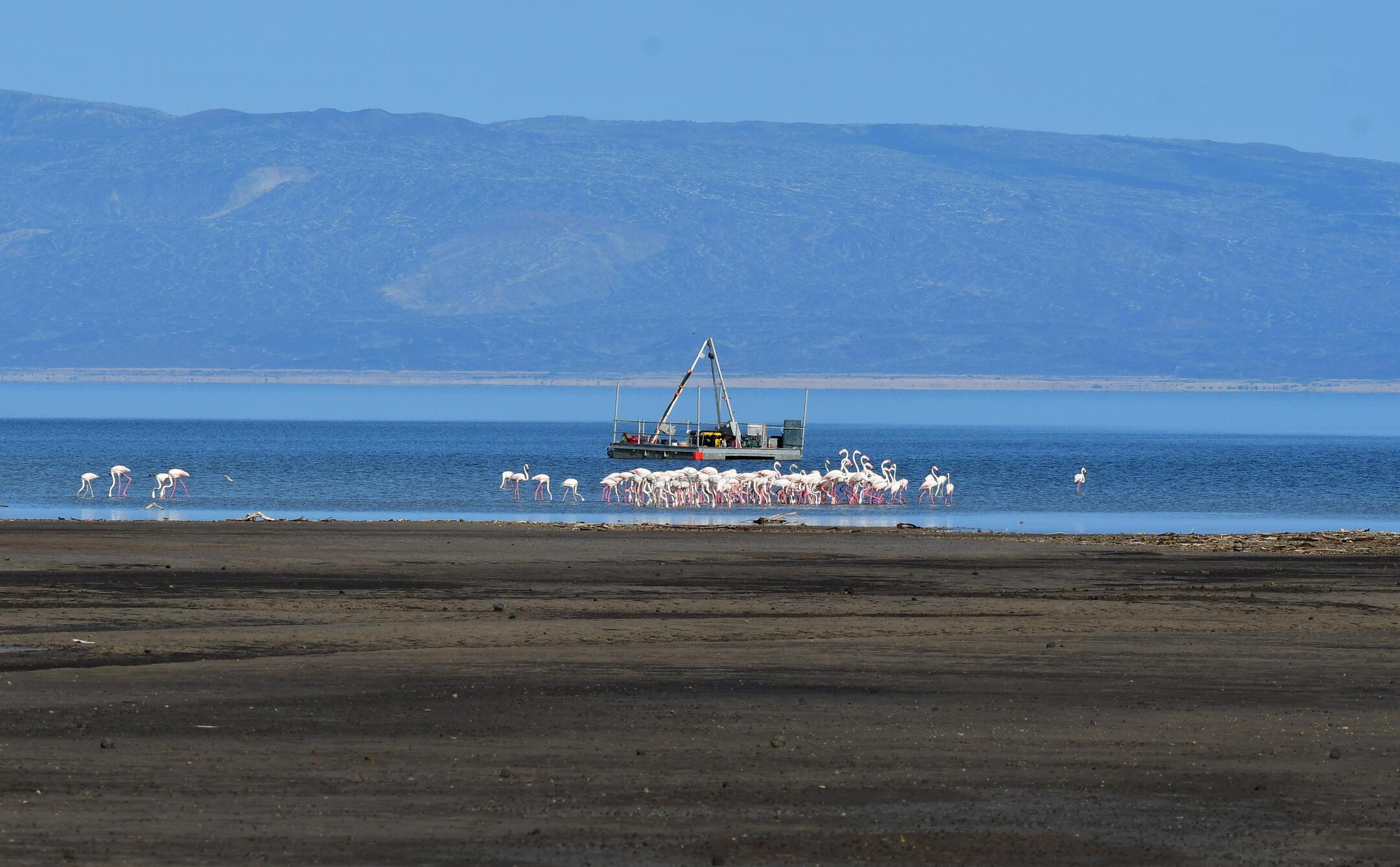 Alimenté par la rivière Awash, qui prend sa source sur les plateaux éthiopiens, le lac Abbé est le dernier d’une série de lacs salés s’écoulant vers le sud. Il est endoréique : clos, il n’a pas d’exutoire et ne se déverse pas dans la mer. Son nom signifie « lac pourri ». Cela n’empêche pas les flamants roses d’y établir leurs quartiers… Bien plus à l’aise dans ce milieu que l’équipe de scientifiques venue sonder les profondeurs du lac et extraire des carottes -sédimentaires de plusieurs dizaines de mètres de long.