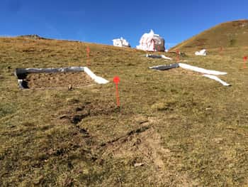 80 m2 de terrain s’envoleront par hélicoptère mercredi 28 septembre, après une semaine d’intense préparation mobilisant au total plus de vingt personnes pendant 10 jours. A terme, des panneaux à destination du grand public seront proposés, afin de contribuer au développement du tourisme scientifique dans notre territoire.