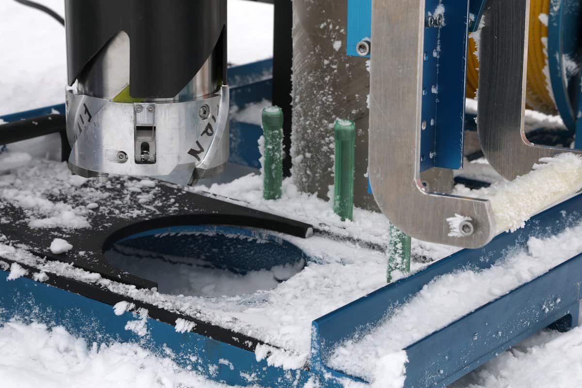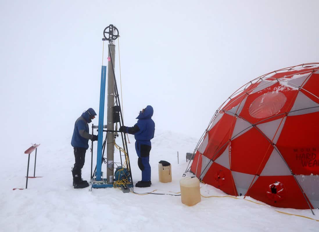 Profitant d’une courte accalmie météorologique, l’équipe s’est ensuite rendue au sommet pour commencer le forage sur le glacier. Deux carottes de glace ont été extraites, en une dizaine de jours, jusqu’au socle rocheux : la première de 137 mètres et la seconde de 134 mètres . Le forage de la troisième carotte initialement prévu n’a pas pu être tenté, faute de temps et afin de garantir la sécurité des équipes.