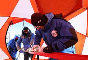 Partie le 22 mai de La Paz après plusieurs jours d’acclimatation à l’altitude, l’équipe internationale (France, Bolivie, Russie, Brésil) de 15 chercheurs et une trentaine de guides et porteurs boliviens a dû affronter des conditions climatiques extrêmes dès l’arrivée au camp de base, situé à 4 500 mètres d’altitude. De fortes chutes de neige et des vents violents ont en effet retardé de plus d’une semaine le transport du matériel (carottier, 75 caisses isothermes, matériel de campement…) jusqu’au sommet.