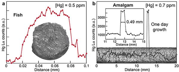 "Bien que la concentration de mercure urinaire soit considérée comme le biomarqueur le plus précis et le plus largement utilisé pour évaluer l’exposition chronique aux vapeurs de mercure et au mercure divalent, nous avons montré que le mercure inorganique issu des amalgames dentaires peut être détecté dans les cheveux avec une structure intermoléculaire distincte de celle du méthylmercure provenant de la consommation de poisson" explique Jean-Paul Bourdineaud, professeur de toxicologie environnementale à l’Université de Bordeaux (France).