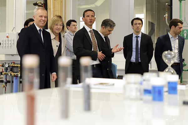 Cette visite a également été l’occasion d’échanges les partenaires industriels : Bruno Cedat, Directeur du développement de Panabee Innovation - start-up située à Alixan (Drôme), intéressé par l’utilisation des nanomagnétites pour éliminer les polluants des eaux usées (pesticides, médicaments, métaux lourds) et Xavier Vigor, Vice-president "Technologies, Projects & Industrial, H2 Energy initiative" chez Air Liquide.