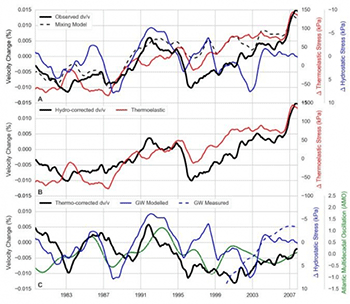 Monitoring ground water storage at mesoscale using seismic noise : 30 years of continuous observation and thermo-elastic and hydrological modeling. Thomas Lecocq ; Laurent Longuevergne ; Helle Anette Pedersen ; Florent Brenguier ; Klaus Stammler, Scientific Reports 7, Article number : 14241 (2017). doi:10.1038/s41598-017-14468-9