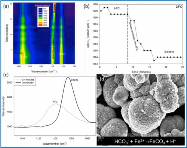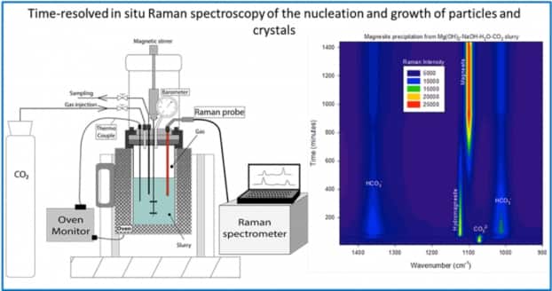 Time-resolved in situ Raman spectroscopy of the nucleation and growth of siderite, magnesite and calcite and their precursors, German Montes-Hernandez and Francois Renard, Cryst. Growth Des, 2016 . DOI : 10.1021/acs.cgd.6b01406