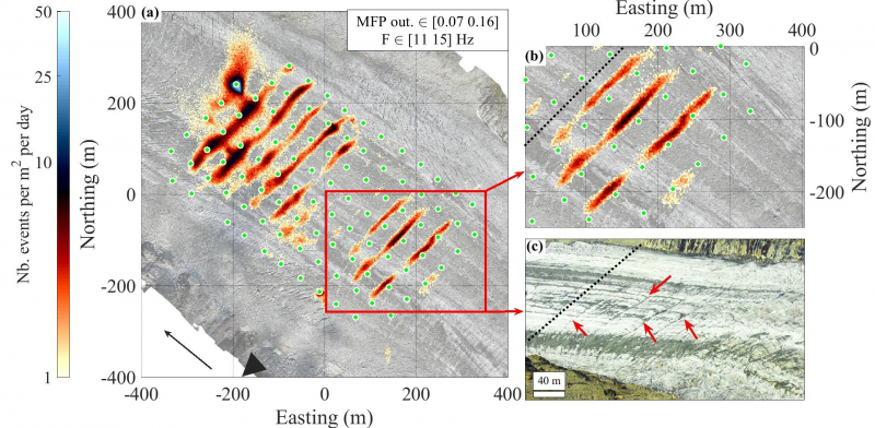 Nanni, U., Roux, P., Gimbert, F., & Lecointre, A. (2022). Dynamic imaging of glacier structures at high-resolution using source localization with a dense seismic array. Geophysical Research Letters, 49, e2021GL095996.