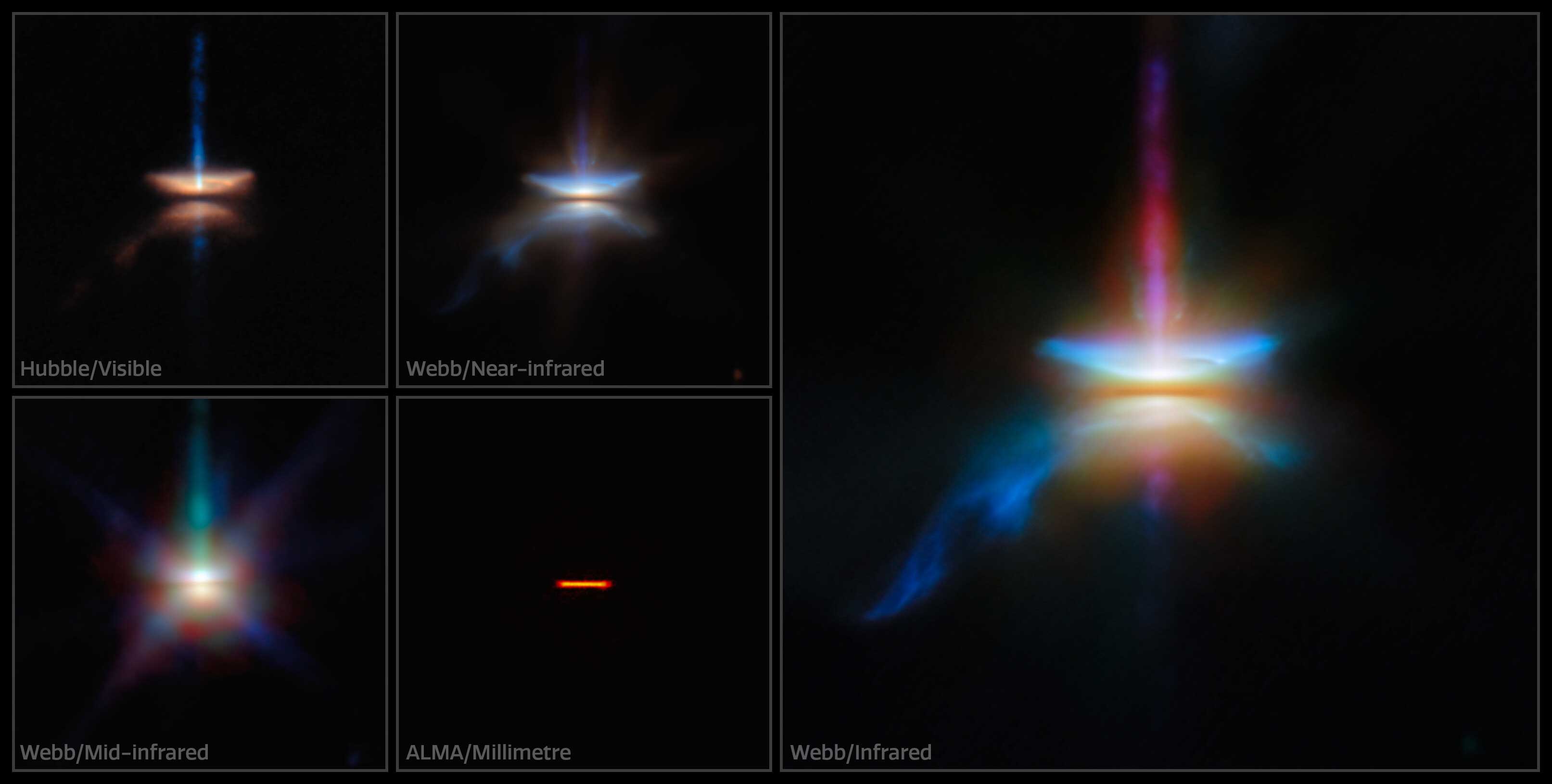 Au cours de la première année d’opération de JWST, une équipe scientifique impliquant des scientifiques de l’Institut de planétologie et d’astrophysique de Grenoble (IPAG-OSUG - CNRS/UGA) a obtenu des images de 4 grands disques protoplanétaires vus par la tranche pour lesquels nous disposions déjà d’images HST et ALMA. Ces nouvelles images ont confirmé la stratification des grains dans tous les disques, mais avec des degrés de sédimentation différents entre les systèmes. En particulier, dans certains systèmes, les grains atteignant une taille de 10 microns sont entraînés jusqu’à la surface du disque, ce qui suggère que ces grains sont particulièrement structurés et poreux, comme les poussières cométaires observées dans le système solaire. À l’inverse, dans d’autre systèmes, les grains de cette taille sont sujet à une forte sédimentation. Au-delà de ces tests des modèles de formation planétaire, ces observations ont révélé des éléments totalement inattendus, comme une structure en X brillante dans l’infrarouge dans un cas, ou un cocon diffus dans un autre. Dans les deux cas, ces structures sont bien plus étendues que les limites du disque telles qu’indiquées par ses composantes de gaz et de poussière, suggérant la présence de vents qui pourraient contribuer à la dissipation du disque. De tels vents ont été précédemment détectés avec des observations à basse résolution mais ces nouvelles images permettent de caractériser en détail leur taille et morphologie.