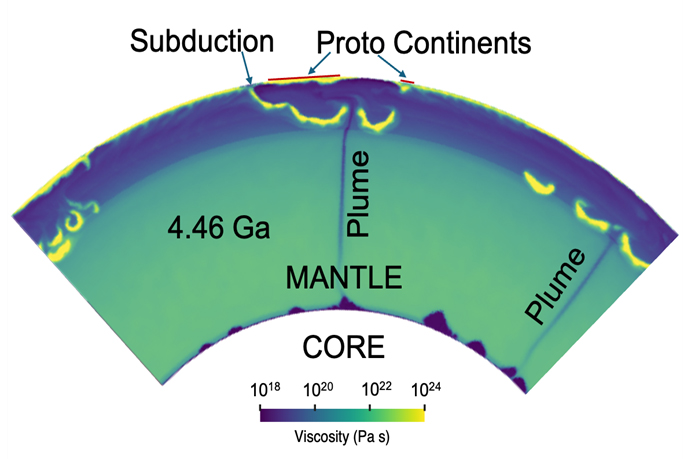 À l’inverse, les nouveaux résultats présentés dans cette étude montrent que l’activité lithosphérique durant l’Hadéen était dynamique, faite de plumes mantelliques (remontées de matériel chaud provenant de la limite manteau/noyau) qui, à leur arrivée à la surface du globe, généraient des mouvements tectoniques horizontaux amenant à de la subduction. C’est lors de la subduction de plaques océaniques à l’Hadéen que les premiers continents se sont formés. Ce type d’activité dynamique apparait par ailleurs bien plus favorable à l’émergence de la vie sur Terre que la configuration statique jusqu’alors imaginée pour l’Hadéen.