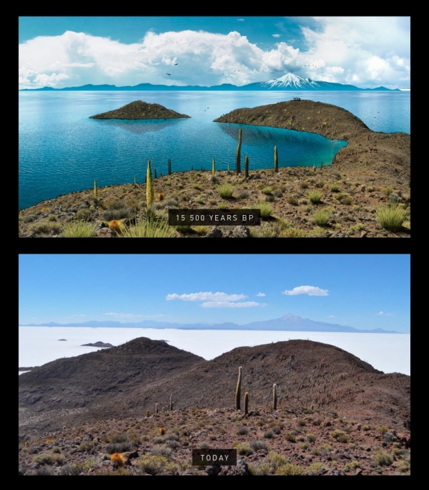 Au sud des Andes tropicales, sur l’Altiplano bolivien, le climat est aujourd’hui d’une aridité extrême, on y rencontre le plus grand désert salé du monde, le Salar de Uyuni. Pourtant, il y a seulement 15 500 ans (c.-à-d. 13 500 ans av. J.-C.) cette région hébergeait un lac immense, le lac Tauca, qui a couvert pendant plus de 1000 ans une superficie de 52 000 km2, une taille comparable à celle de l’immense lac Michigan, avec des profondeurs dépassant 120 m. Si nous savions que des précipitations plus importantes et des températures plus froides ont régné à cette époque pour former et maintenir le lac Tauca, nous ne connaissions pas encore les mécanismes atmosphériques qui ont conduit à cette réorganisation drastique de la répartition des précipitations en Amérique du Sud. Ainsi, plusieurs scénarios différents étaient proposés pour expliquer l’origine des masses d’air qui ont apporté l’humidité nécessaire à la formation du lac Tauca. Ces incertitudes étaient dues au fait qu’il n’existait jusqu’à présent aucune méthode pour reconstruire le champ régional des précipitations