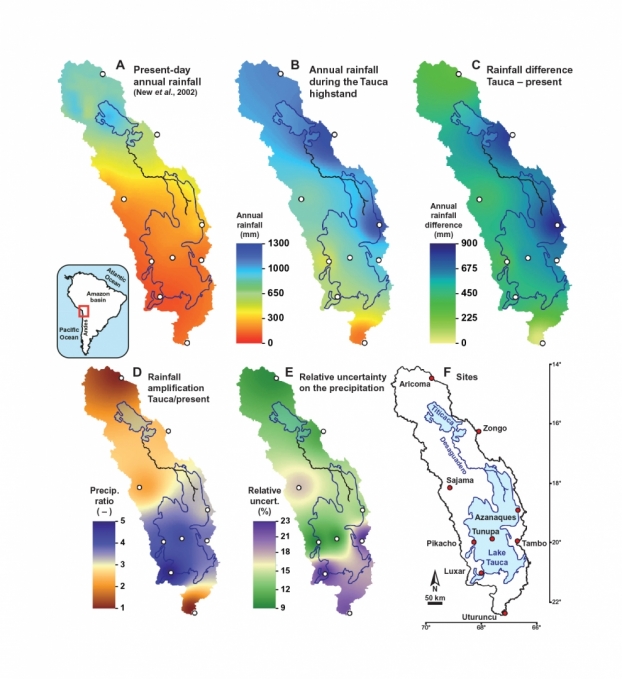 La carte de précipitations ainsi obtenue montre que les précipitations étaient maximales sur la partie orientale de l’Altiplano. Les chercheurs interprètent cette configuration comme un déplacement vers le sud de l’anticyclone de Bolivie (Bolivian High) de l’ordre de 500 km pendant la seconde partie de l’évènement Heinrich 1, il y a 15 500 ans. Cette hypothèse se base sur des observations climatologiques modernes : la position et l’intensité de cette zone de haute pression contrôle les entrées d’humidité en provenance de l’est sur l’Altiplano. Cette théorie trouve également sa place dans un corpus d’avancées récentes sur la paléoclimatologie sud-américaine. En effet, à l’échelle continentale, un consensus se dessine et suggère un déplacement vers le sud de tous les systèmes atmosphériques sud-américains lors des grandes périodes de refroidissement de l’hémisphère nord, conjointement à un ralentissement de la circulation thermohaline de l’océan.