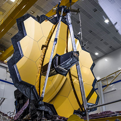 JWST observera dans le domaine de l’infrarouge, une longueur d’onde qui a l’avantage de passer au travers (et donc rendre « transparents ») les pouponnières d’étoiles, à savoir les nuages de gaz et de poussières où naissent les étoiles. Au sommet de l’état de l’art mondial il dispose d’une très grande résolution spectrale procurée par un immense miroir de plus de 6 mètres, segmenté en 18 miroirs hexagonaux dorés, afin de mieux réfléchir la lumière infrarouge, et donc de regarder plus loin dans le temps. C’est le plus grand télescope jamais envoyé dans l’espace. Il vient d’ailleurs en complément du télescope spatial Hubble, qui observe également l’Univers depuis 1990 dans le domaine ultra-violet et visible, et dont le miroir est 3 fois plus petit que celui du JWST.