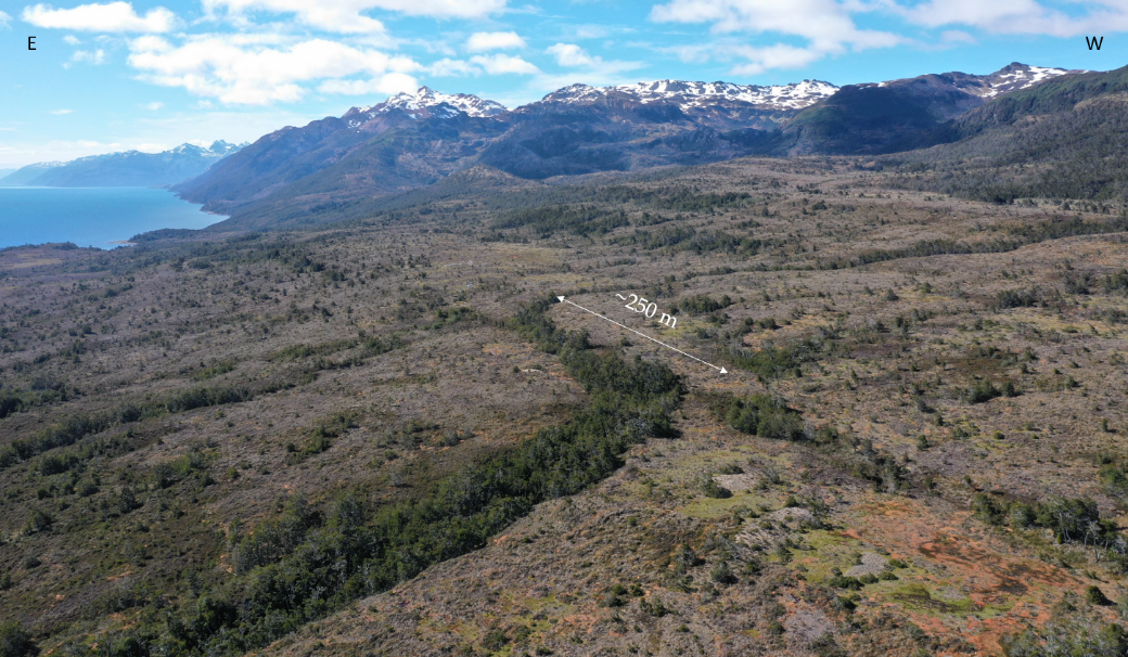 Lorsque ces plaques bougent l’une par rapport à l’autre, de gros séismes peuvent se produire, comme en 1949 où deux tremblements de terre de magnitude 7,8 et 7,5 secouèrent la région le même jour. Mis à part ces séismes, l’activité de cette faille est totalement inconnue, puisque les archives historiques datent de la colonisation occidentale survenue uniquement à la fin du XIXème siècle. Mais la Terre de Feu a été également marquée par un autre événement naturel beaucoup plus ancien : la dernière glaciation. Il y a environ 20 000 ans, une grande partie de la Terre de Feu était recouverte par les glaciers andins. L’action érosive et sédimentaire des glaciers a complètement remodelé et réinitialisé le relief. Parallèlement, elle a créé de nouvelles morphologies au travers de la zone de faille, comme des vallées ou des crêtes, qui ont ensuite enregistré la déformation tectonique sur plusieurs cycles sismiques jusqu’à nos jours.