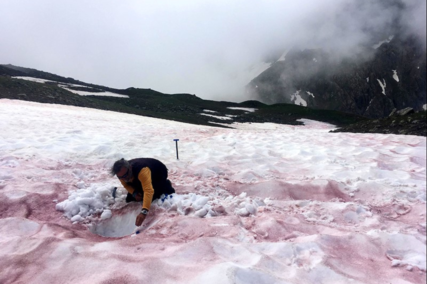 Après la fonte des neiges, l’algue se retrouve dans le sol et entreprend une véritable métamorphose pour s’adapter à un milieu radicalement différent. Les scientifiques voudraient à présent comprendre ce processus encore jamais étudié. Le temps presse car tout l’écosystème dépendant de Sanguina nivaloides est menacé par le changement climatique et la réduction de l’enneigement en montagne.
