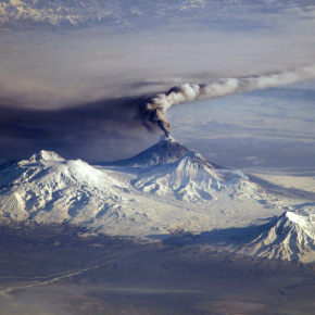 Photo de groupe volcanique de Klyuchevskoy prise depuis la station spatiale internationale. © Courtesy of the Earth Science and Remote Sensing Unit / NASA Johnson Space Center(Image ISS038-E-5515 ; https://eol.jsc.nasa.gov).
