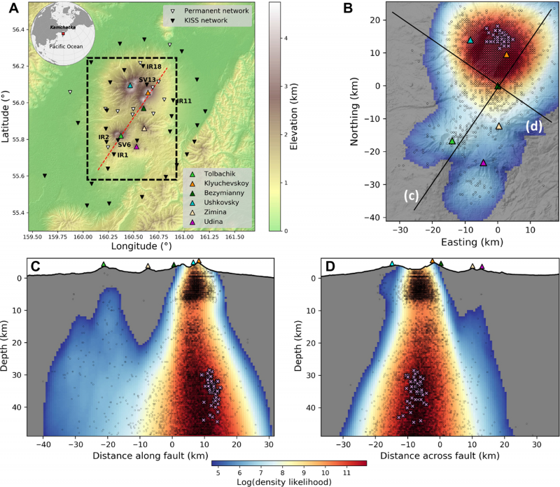Pour mieux comprendre ces parties profondes des systèmes de plomberie des volcans actifs un groupe internationale composé de chercheurs de l’Institut de Science de la Terre (ISTerre/OSUG, CNRS/UGA/IRD/USMB/UGE) à Grenoble et de l’Institut de Physique du Globe à Paris, ensemble avec leurs collègues allemands et russes, ont mené une étude de l’activité sismique sous le groupe de volcans de Klyuchevskoy à Kamchatka en Russie, un des clusters de volcans de subduction le plus actif au monde.