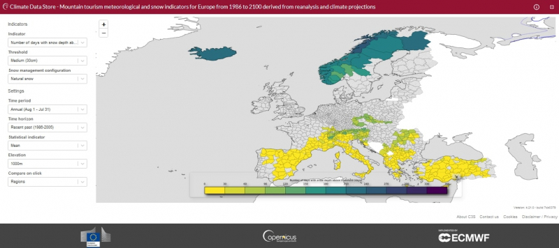 Pan-European meteorological and snow indicators of climate change impact on ski tourism – Climate Services (2021), Samuel Morin et al. DOI : https://doi.org/10.1016/j.cliser.2021.100215