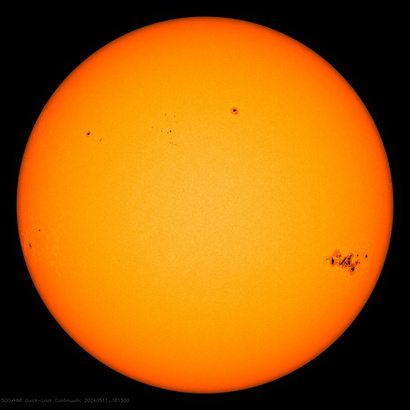 Jeudi 9 mai, effervescence au Centre opérationnel de météorologie de l’espace des Alpes (COMEA) et dans tous les autres centres. Depuis deux jours, le Soleil émet des flashs de lumières en rayons X très puissants. La responsable est une tache solaire, « 3664 » de son joli nom. Visuellement gigantesque, plusieurs dizaines de fois la taille de la Terre, il s’agit d’une zone magnétique intense, à la configuration complexe.