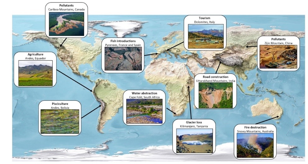 Mountains are an essential to maintain life on our planet as we know it. They are characterised by a rugged and heterogeneous landscape, often hostile to humans, with very harsh and changing environmental conditions that provide a myriad of ecological niches in small areas. Although mountain species are well adapted to living in extreme conditions, they are very vulnerable to human threats to ecosystems. As mountain ecosystems are very sensitive to global change, they are seen as sentinels of the change.