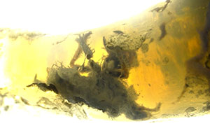 Thanks to X-ray tomography, a kind of high-resolution scanner, it was possible to reconstruct the shape of the fossil in its entirety. The 6 pastes and its body divided into head, thorax and abdomen make it possible to say that it is an insect. The shape of its front pasta and its mouth parts are characteristic of the larvae of the super-family Cicadoidae, of which the best known representatives are the cicadas. The larvae of these insects live in the soil, sometimes for several years (up to 17), so fossils of these larvae are rare.