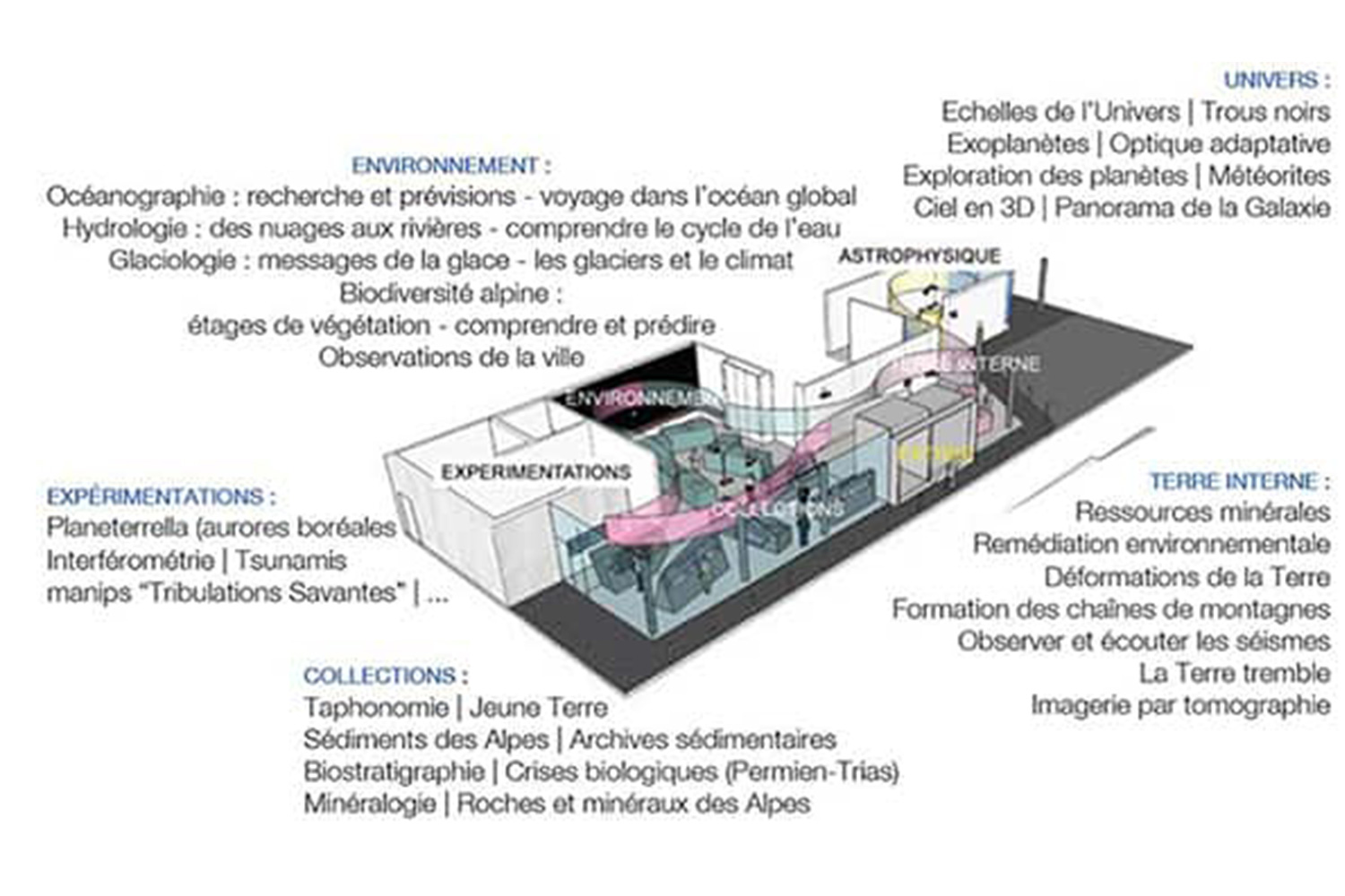 This space invites you, within the university Grenoble Alpes, to the curiosity and the escape. From discovering collections of rocks, minerals and fossils, to understanding how natural systems work, to observing tools, this permanent exhibition, freely accessible to all audiences throughout the year, showcases resources and activities of the Observatory.