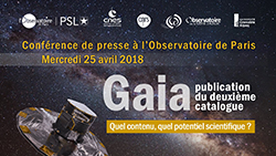 Le mercredi 25 avril 2018, entre 11h40 et 12h30, se tient à l’Observatoire de Paris, en partenariat avec le CNES, le CNRS, l’Observatoire de la Côte d’Azur et l’Université Grenoble Alpes, une conférence de presse qui annoncera l’ouverture de l’accès aux données par l’ESA du deuxième catalogue de la mission Gaia.