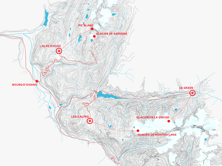 Le voyage dans les sons des glaces est à vivre chez soi en fermant les yeux, ou en écoute embarquée et les yeux grands ouverts à Grenoble et dans 4 sites de montagne l’Oisans, guidé par la carte d’écoute éditée spécialement pour le projet.