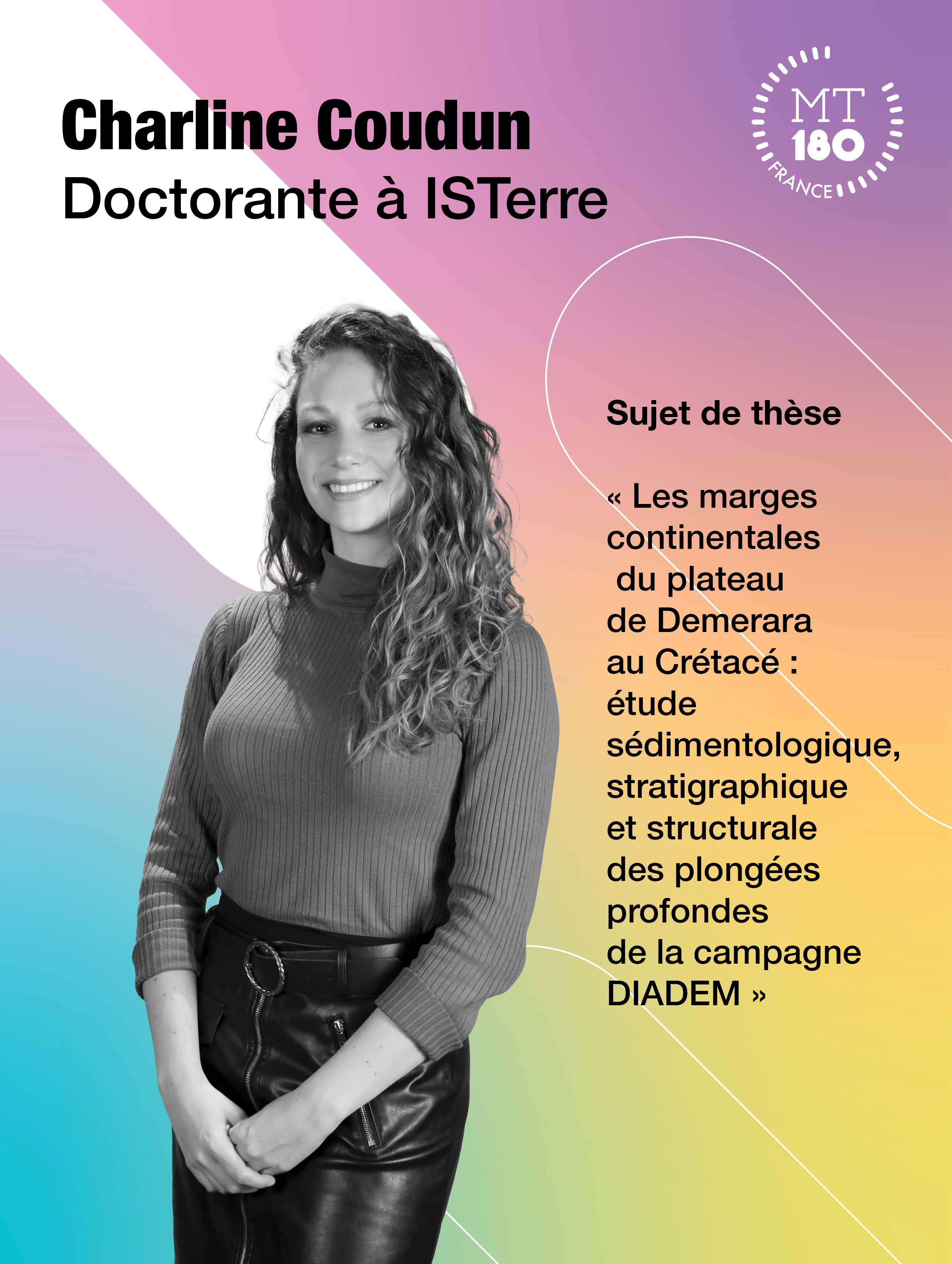 Après plus de six mois d’aventure, France Universités et le CNRS peuvent maintenant révéler les 16 doctorantes et doctorants finalistes, qui monteront sur la scène de la Grande Halle de La Villette le 17 juin, parmi eux Charline Coudun, doctorante à ISTerre . Objectif : présenter leur sujet de thèse en des termes simples en 3 minutes, et pas une seconde de plus… Lors de cet événement le public, dont des lycéens et lycéennes, ainsi que le jury sélectionneront les cinq lauréates et lauréats nationaux de l’édition 2025 du concours « Ma thèse en 180 secondes ».
