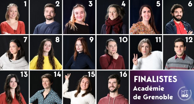 Faire comprendre au plus grand nombre leurs sujets de thèse, en trois minutes, avec une seule diapositive, tel est le défi que relèvent les 16 doctorantes et doctorants finalistes MT180. Au-delà de la performance presque "théâtrale", ce concours permet aux doctorants et doctorantes de renforcer leurs compétences en vulgarisation et communication scientifique, et ainsi établir de nouveaux liens avec la société, et donc partager largement la recherche universitaire. Conscient des enjeux multiples d’un tel exercice, l’Université Grenoble Alpes (UGA) et l’Université Savoie Mont Blanc (USMB) offre la possibilité aux candidats et candidates de bénéficier d’une formation spécifique destinée à les préparer au mieux pour la finale académique.
