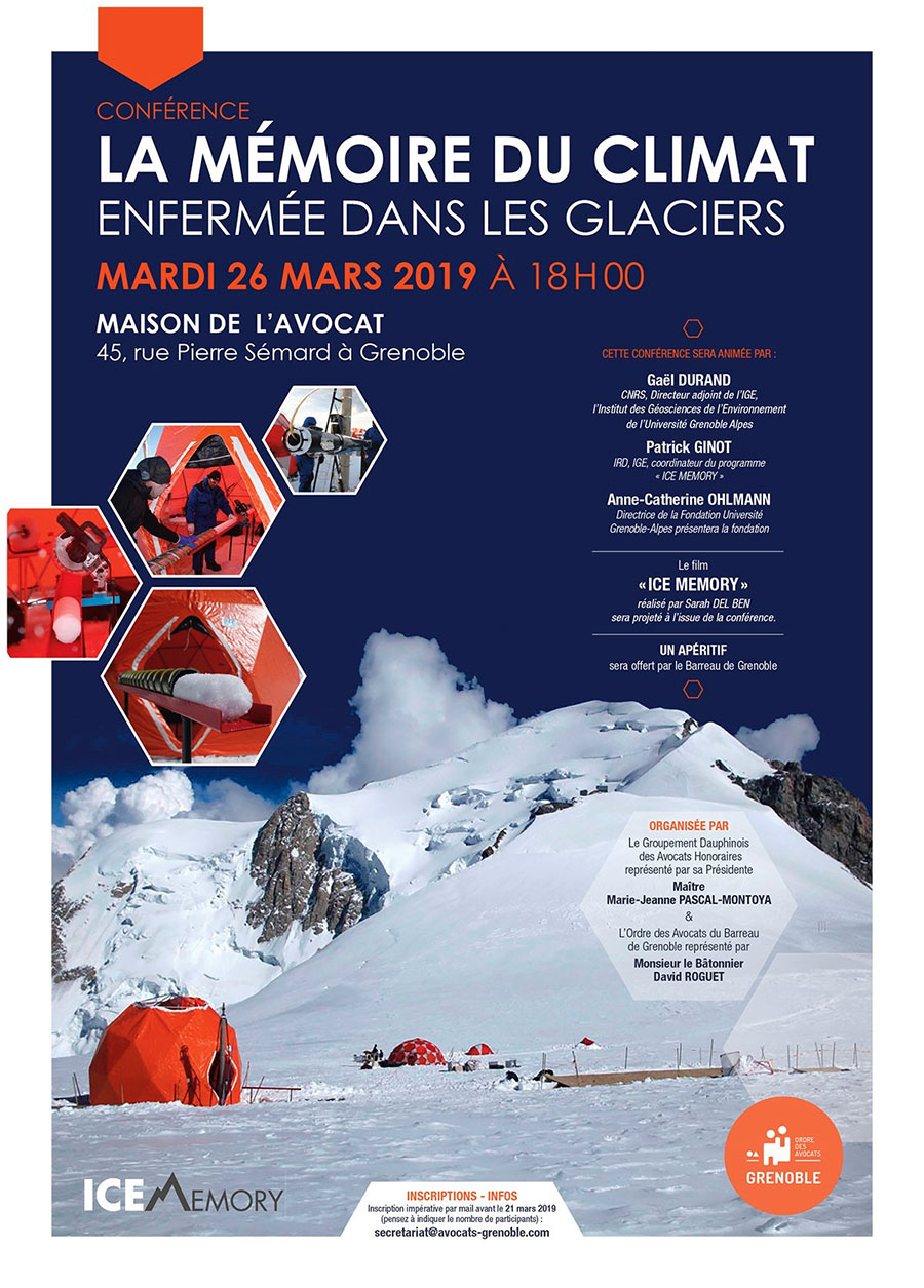 Cette soirée sera par ailleurs le cadre d’une intervention de Anne-Catherine Ohlmann, de la Fondation de l’université Grenoble Alpes qui finance le programme Ice memory.