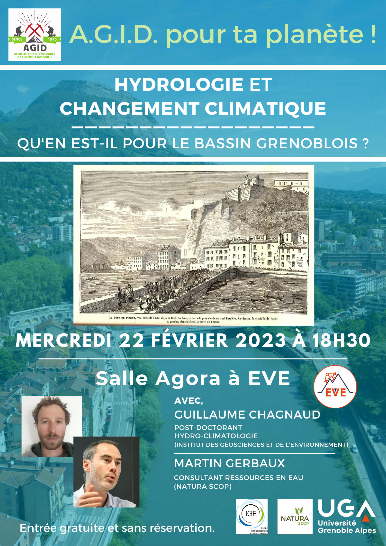La conférence sera animée par Guillaume Chagnaud, post-doctorant en hydroclimatologie à l’Institut des Géosciences et de l’Environnement (IGE/OSUG) qui étudie les régimes pluviométriques ainsi que l’impact du changement climatique sur l’hydrologie régionale. Accompagné par Martin Gerbaux, ancien chercheur grenoblois qui est présentement consultant en ressources en eau avec sa société coopérative NATURA SCOP.