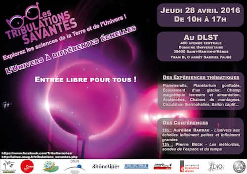 La 10ème édition des Tribulations Savantes, journée de vulgarisation scientifique dans le domaine des Sciences de la Terre et de l’Univers, aura lieu le jeudi 28 avril à Saint-Martin-d’Hères.