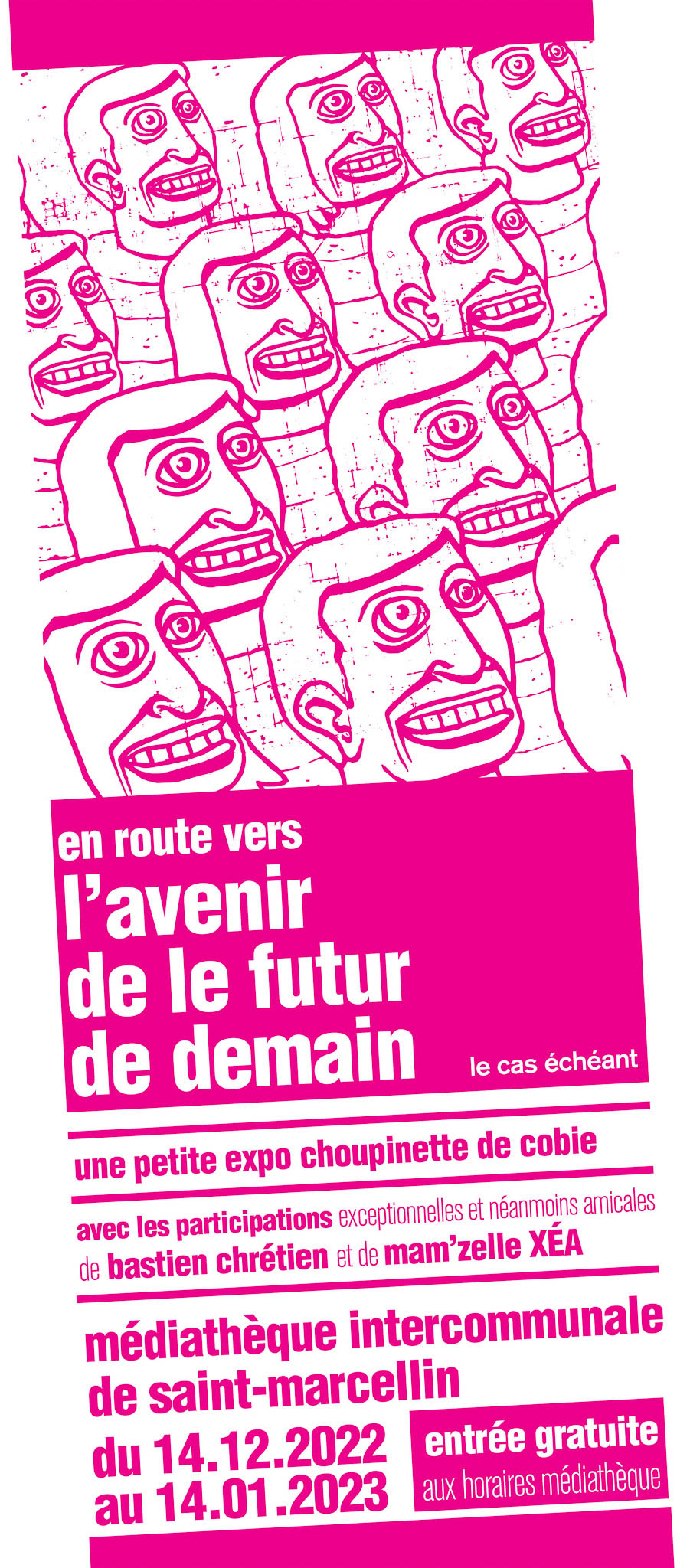 Dans le cadre de la résidence artistique En route vers l’avenir de le futur de demain visant à interpeller le grand public sur le changement climatique, une exposition de l’artiste Cobie- avec la participation de Bastien Chrétien et Mam’zelle Xéa - ouvrira ses portes du 14 décembre 2022 au 14 janvier 2023 à la Médiathèque intercommunale de Saint-Marcellin en Isère (entrée gratuite).