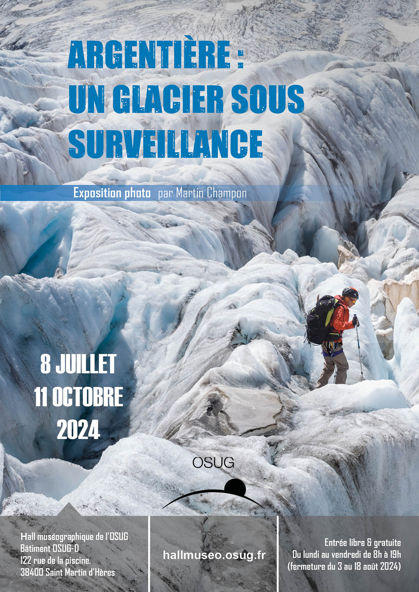 L’exposition présente une mission de terrain effectuée par une équipe de scientifiques du laboratoire ISTerre (Institut des Sciences de la Terre) qui vise à entretenir un ensemble de stations GPS sur le glacier d’Argentière, dans le massif du Mont- Blanc. Pour intervenir en terrain haute-montagne, les chercheurs sont formés par l’École Nationale de Ski et d’Alpinisme (ENSA). Ils effectuent régulièrement des missions d’entretien à la journée sur le glacier afin d’assurer la continuité de production des données. Les conditions météorologiques à 2700 mètres d’altitude et la fonte du glacier en été sollicitent fortement les équipements. Progressivement, il faut remplacer le matériel défectueux : batteries, panneaux solaires, antennes GPS, mâts, etc. Lors des missions, les chercheurs doivent engager des efforts physiques soutenus tout en composant avec le froid et l’isolement.