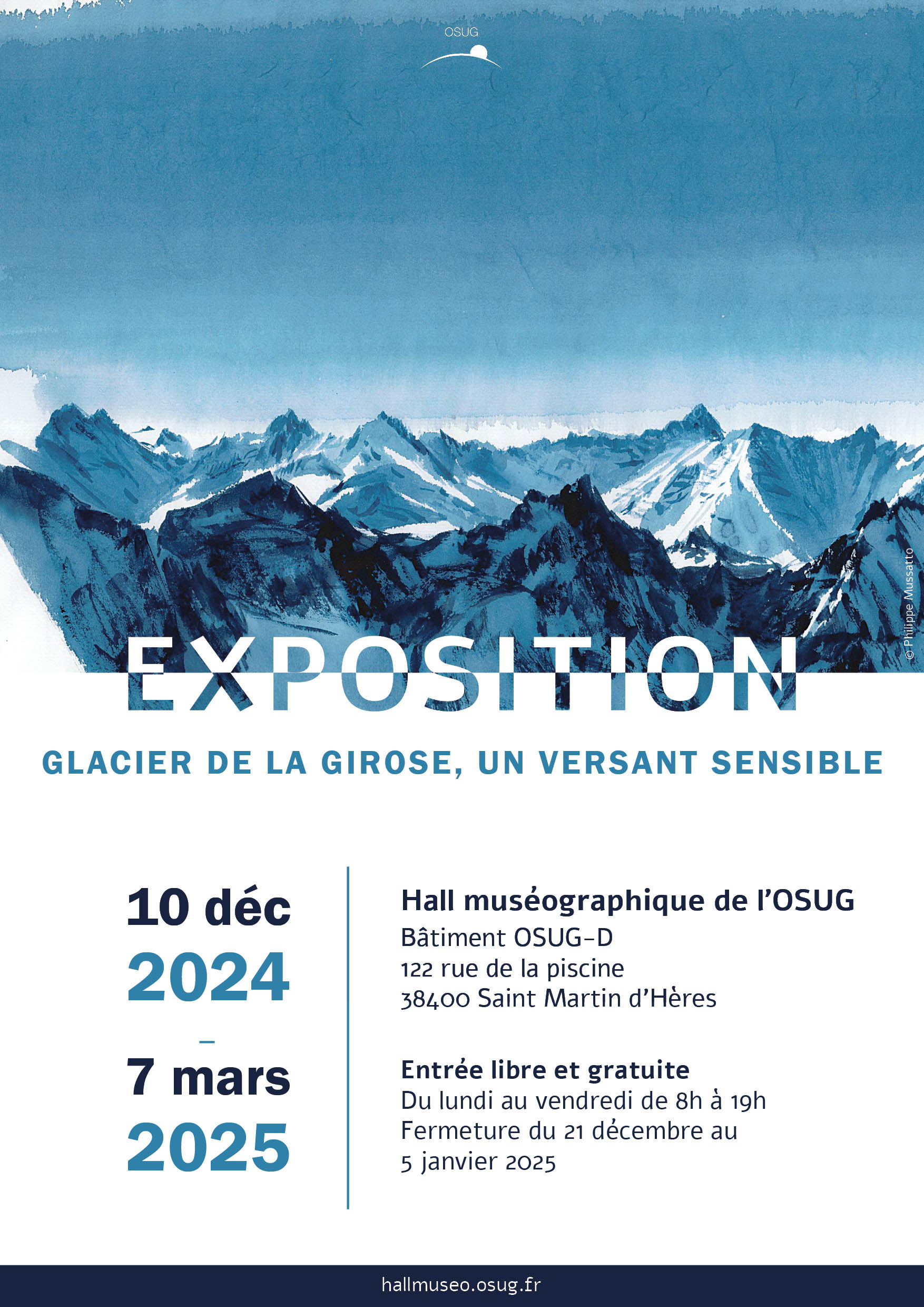 A l’occasion de la sortie du livre « Glacier de la Girose, versant sensible » écrit par le collectif Rimaye [1], le hall muséographique de l’OSUG accueillera une nouvelle exposition du 10 décembre 2024 au 7 mars 2025. Cette exposition d’aquarelles illustre la controverse causée par le projet d’aménagement du troisième tronçon du téléphérique de La Grave, étudiée par dix-huit chercheurs. D’horizons disciplinaires divers mêlant sciences humaines, sciences de la terre et de la vie, ils livrent leurs contributions scientifiques et personnelles au débat public.