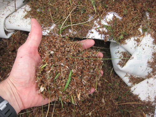 "Pourquoi aller chercher ailleurs ce que l’on peut trouver sur place !" En effet, la provenance des semences est essentielle : les semences locales, plus adaptées aux sites à revégétaliser, vont résister plus longtemps aux conditions parfois extrêmes rencontrées en montagne. Des semences adaptées à l’altitude donc, compatible avec le pastoralisme, et qui favorisent le retour plus rapide d’une végétation typique des prairies d’altitude. Car, sans coup de pouce, un couvert végétal met entre 20 et 30 ans pour se reconstituer !