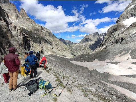 A la jonction des sciences de la terre et de l’environnement et des sciences humaines et sociales, les intervenants et les doctorants ont pu croiser leurs regards et pratiques de travail au fil de la randonnée et de l’immersion dans l’environnement de la haute-montagne et des thématiques abordées : avenir des glaciers, sentinelles du climat ; rôle des refuges, observatoires du changement des pratiques en montagne ; partage de l’espace entre touristes, habitants et biodiversité…