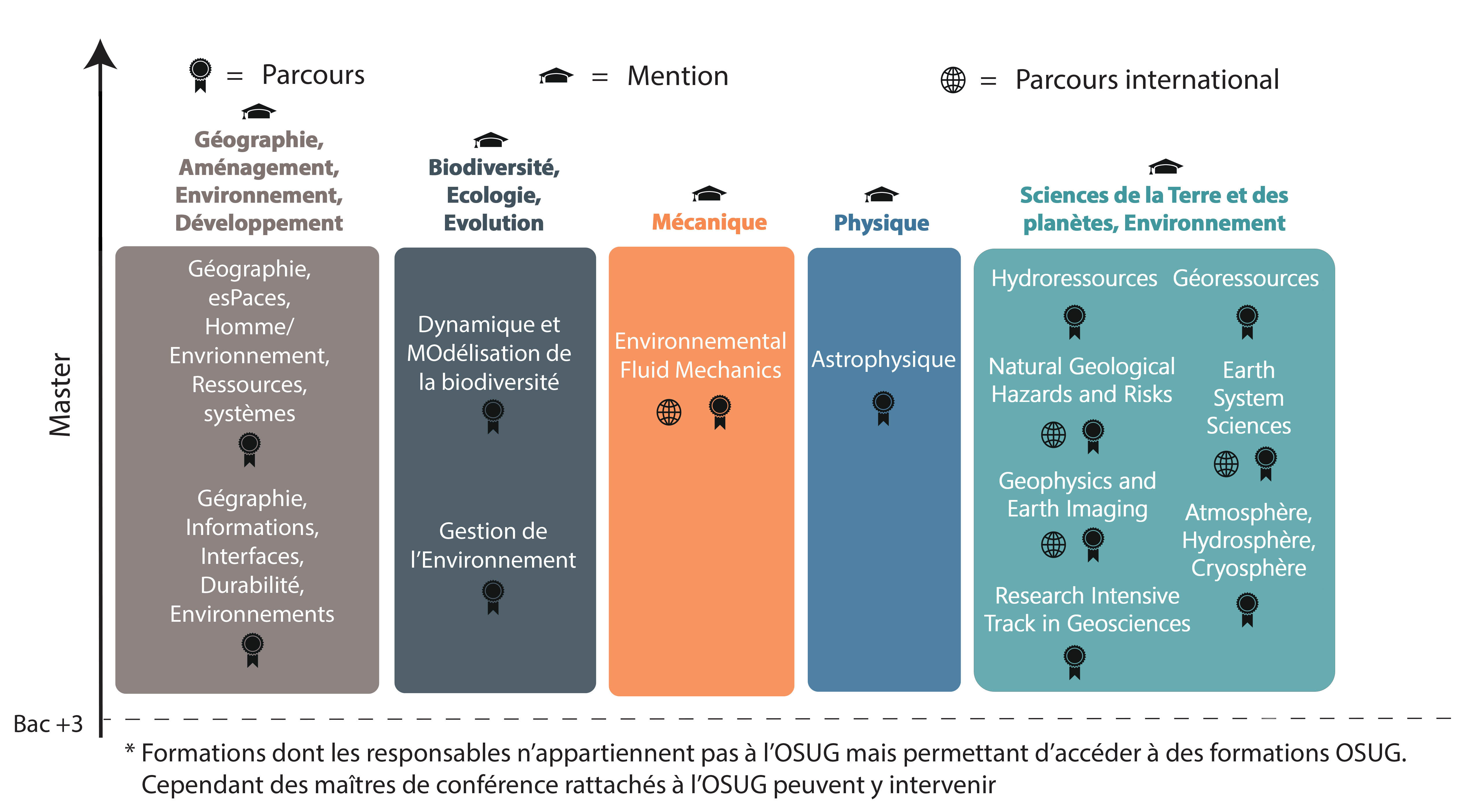 Au sein des mentions de master (tronc commun), les enseignants-chercheurs de l’OSUG sont impliqués dans différents parcours de spécialisation.