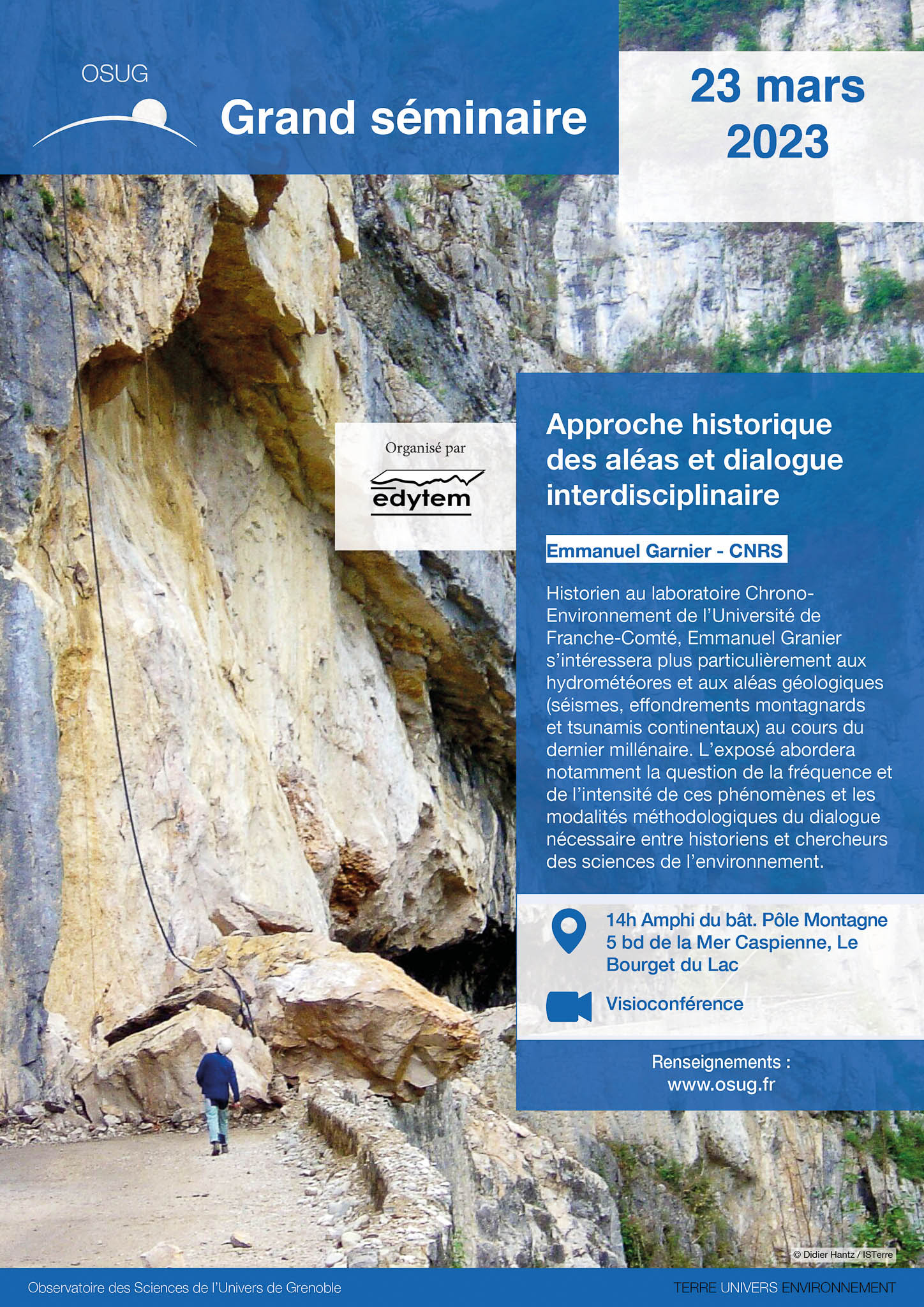 ► Personnes extérieures à la fédération OSUG : inscription à l’événement au lien suivant : https://evento.renater.fr/survey/23-mars-2023-grand-seminaire-osug-approche-historique-des-aleas-et-dialogue-interdisciplinaire-uw8p71s4